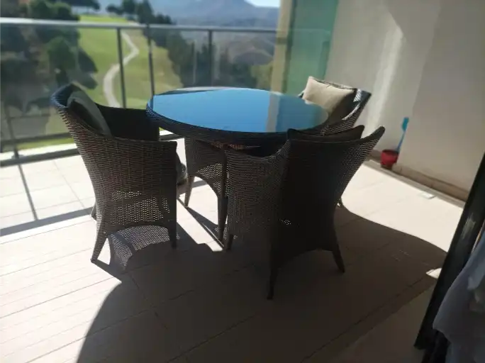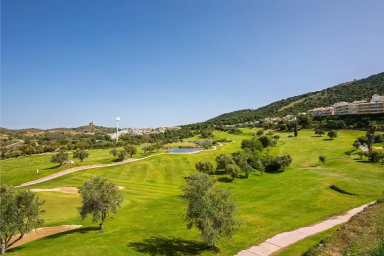 Ático de reciente construcción de estilo moderno situado en el conocido campo de Alhaurin Golf. Ubicado en un recinto cerrado, con jardines y piscina comunitarios , donde la paz y tranquilidad son parte de su esencia. La propiedad se distribuye en dos dormitorios dobles, uno de ellos en suite, con armarios empotrados , un segundo baño, magnifica cocina totalmente equipada y abierta a un acogedor salón comedor, desde donde se accede a una preciosa terraza acristalada en su totalidad y con vistas estupendas. Lo mejor de la vivienda es su espectacular solarium con vistas espectaculares al campo de golf y al paisaje de interior. Incluidos en el precio dos plazas de aparcamiento. Una oportunidad de compra para no dejar escapar.