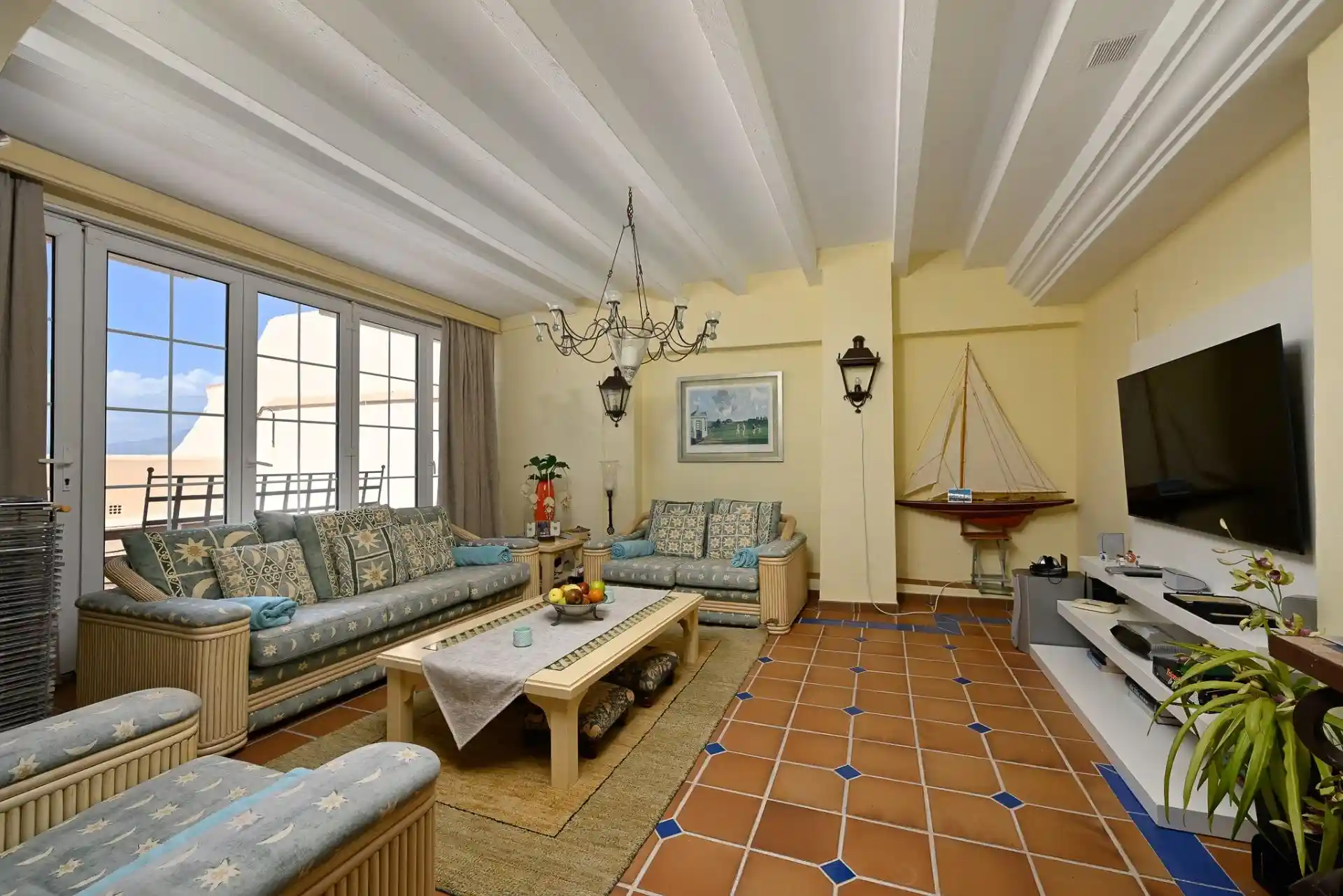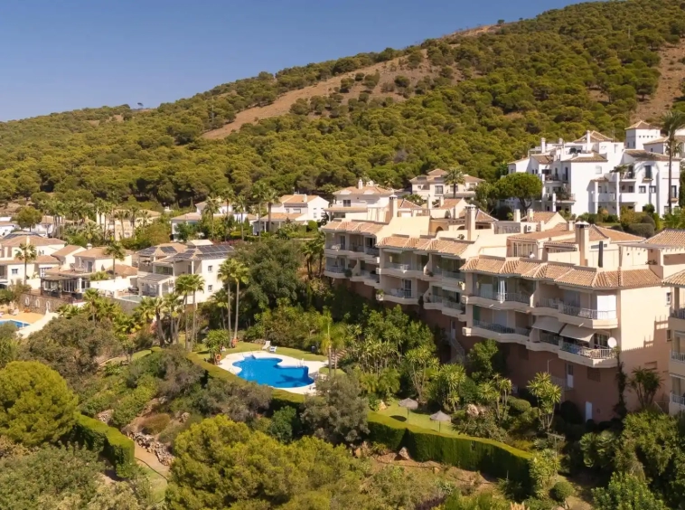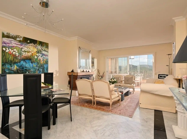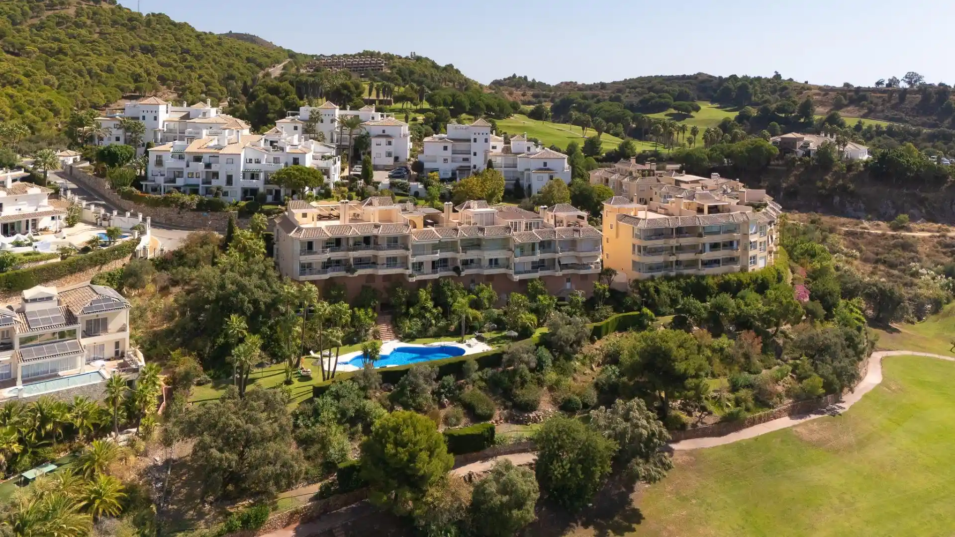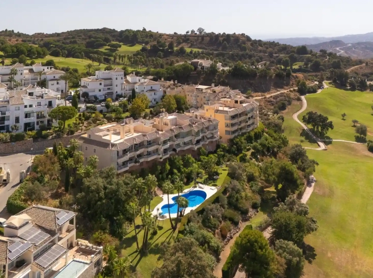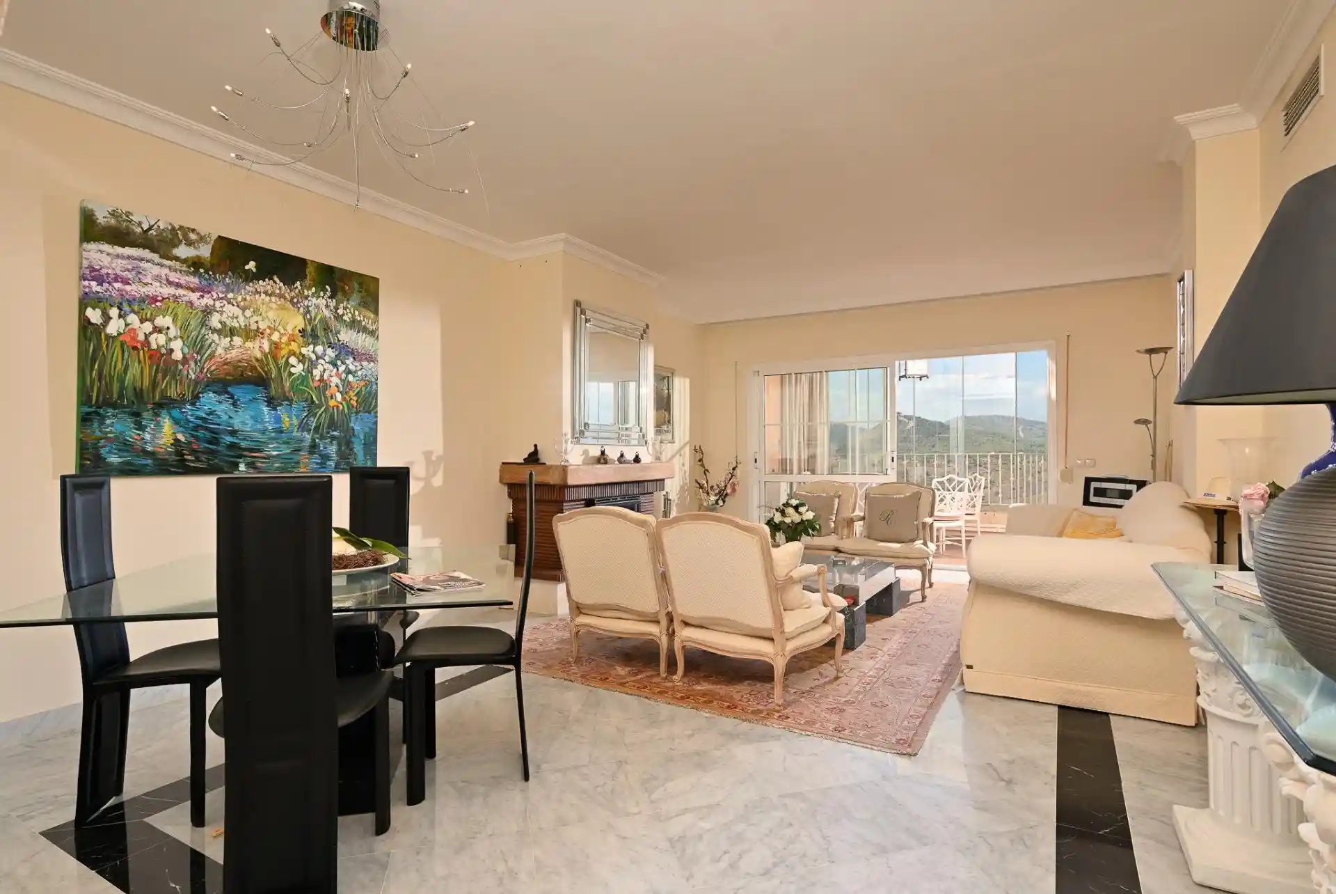 Stunning duplex in Alhaurin Golf with exceptional views of the golf course and in impeccable condition. The spacious property comprises a large living-dining room with a fireplace, opening onto a fabulous and spacious fully glazed terrace with spectacular panoramic views of the course. There is also a large, fully equipped kitchen, as well as two double bedrooms, one of which is en suite with direct access to the terrace, and a second bathroom. Upstairs, there is a third bedroom and another bathroom, plus a second summer living room, ideal for family gatherings. From here, you can access a beautiful terrace with a barbecue area and unbeatable 360º views. In addition, there is a parking space, storage room, swimming pool, and communal gardens. A property with great potential and many possibilities.