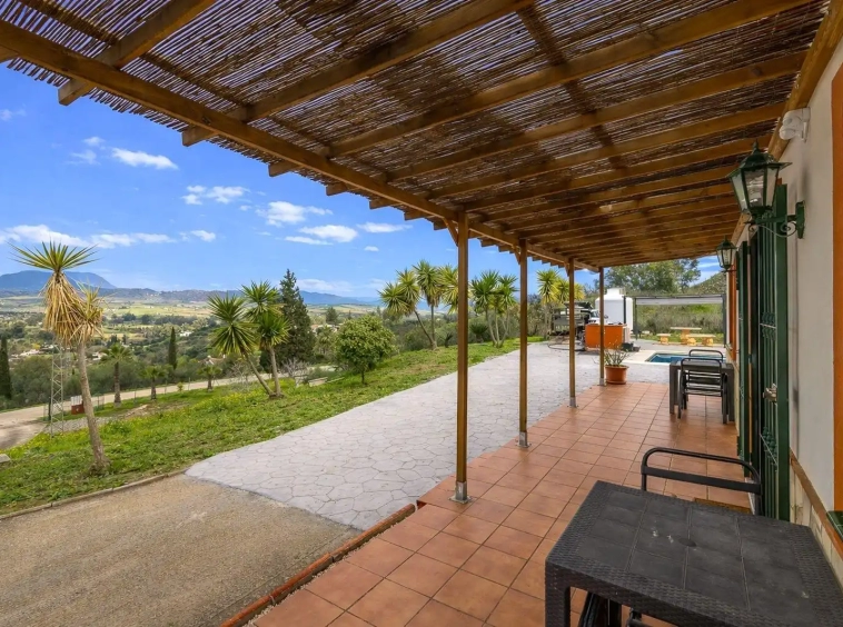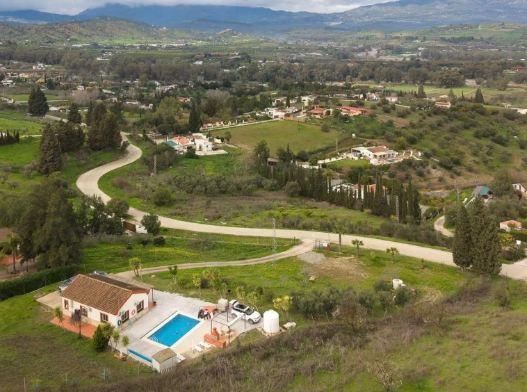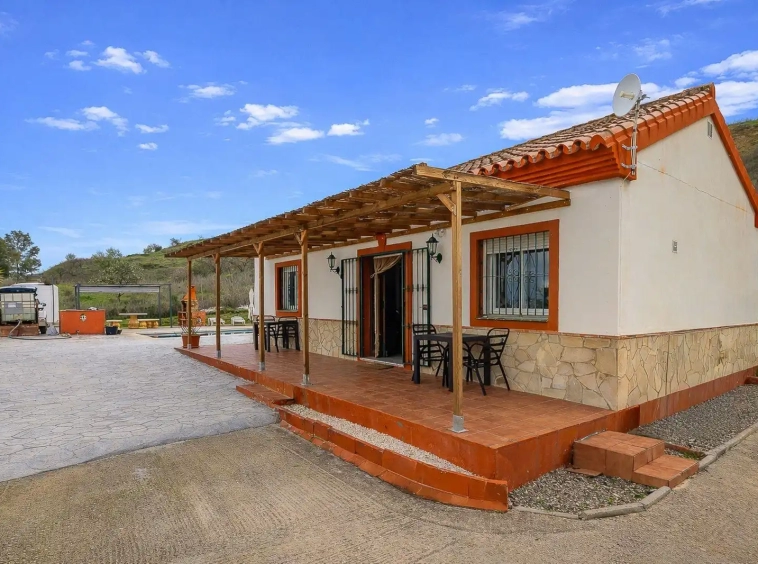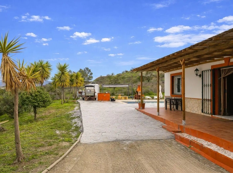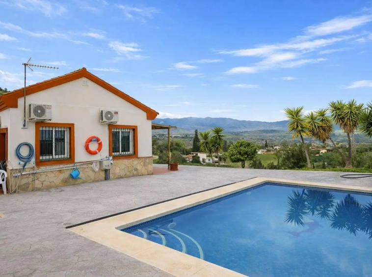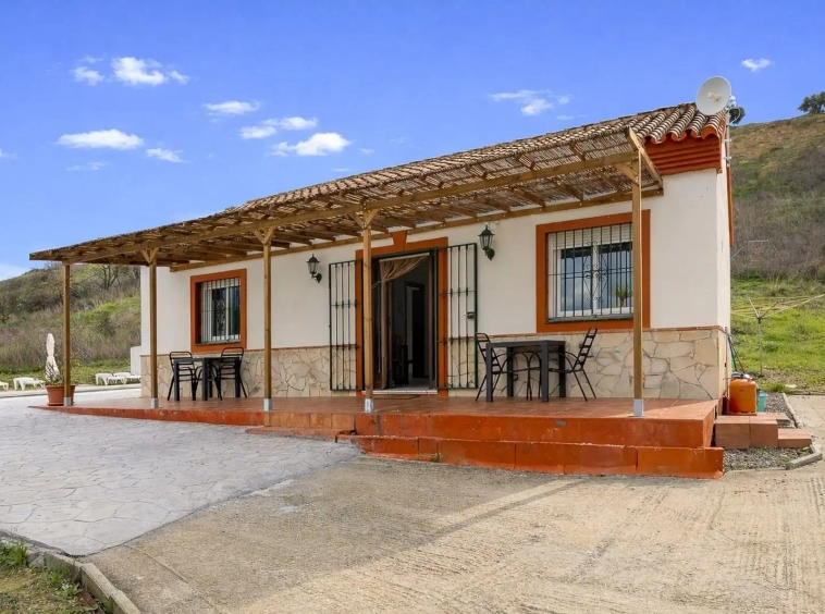 Acogedora casita de campo en muy buen estado, actualmente con licencia de alquiler vacacional e ideal como segunda vivienda ó inversión. La vivienda es de una sola planta, con dos dormitorios dobles, baño completo, cocina americana totalmente equipada y salón con acceso directo al porche de entrada. La finca con más de 6.000m2 esta parcialmente vallada, con rampa de acceso totalmente hormigonada hasta la zona de aparcamiento. Barbacoa y piscina privada de 8×4 rodeada de una terraza desde donde las vistas al valle son espectaculares. Dos depósitos de agua (uno de 20.000l y otro de 8.000l) , a 10 minutos al pueblo de Coin y 30 minutos a la costa y a Málaga ciudad.