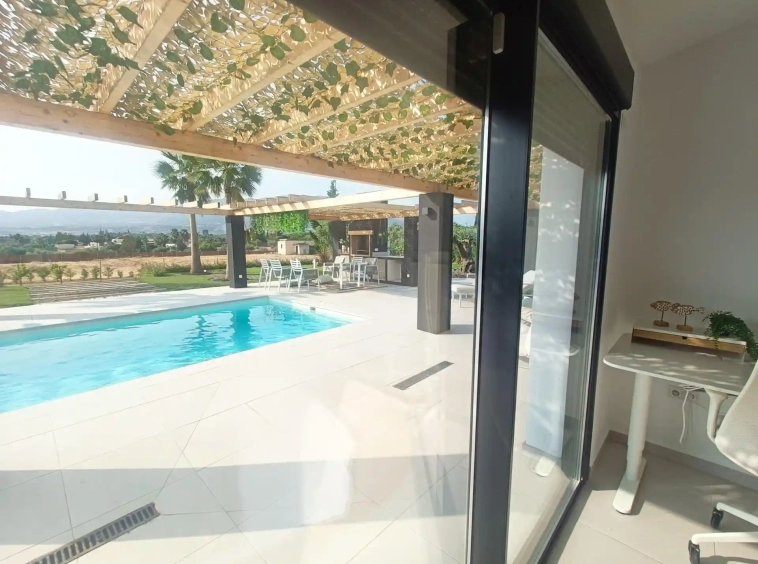 Propiedad en exclusiva reformada en su totalidad con un estilo moderno y minimalista , lista para entrar a vivir con un estilo de vida cómodo pero a la vez disfrutando de la paz y tranquilidad del campo. La vivienda se distribuye en una sola planta y consta de cocina completa con diseño moderno y totalmente equipada incluidos electrodomésticos, con un gran ventanal que la hace muy luminosa y abierta totalmente al salón comedor muy acogedor y con salida directa a la terraza. Tenemos tres dormitorios dobles con amplias ventanales, armarios empotrados, aire acondicionado, frio/Calor, asi como dos baños completos uno de ellos pertenece al dormitorio en suite y el otro seria el familiar con ducha y zona de almacenaje y lavanderia. En la parte de arriba de la vivienda existe una amplia terraza con vistas espectaculares al pueblo de Alhaurin el Grande y donde se puede disfrutar de las noches al fresco. En el exterior ademas tenemos amplia zona de aparcamiento, zona de barbacoa, piscina privada de 8×4 rodeda de una espectacular terraza y zona de jardin. La parcela es totalmente llana, ideal para amantes de caballos, esta vallada en su totalidadad , cuenta con agua de pozo, deposito de agua propio, y sistema de placas solares para que los consumos de suministros de la vivienda puedan ser muy sostenibles. Una propiedad construida con gusto , con las ultimas tecnologías y materiales y muy bien ubicada a tan solo media hora del aeropuerto de Málaga y 10 minutos de Alhaurin, Cártama ó Coin. Se recomienda altamente su visita.