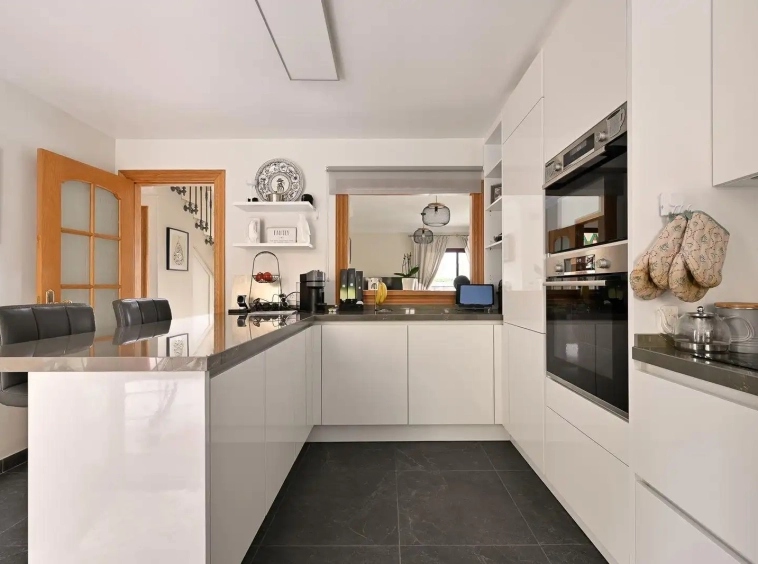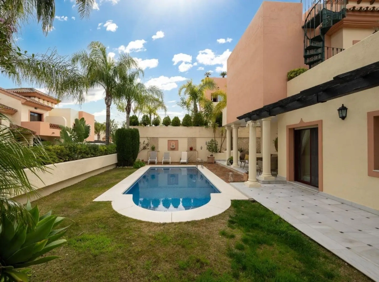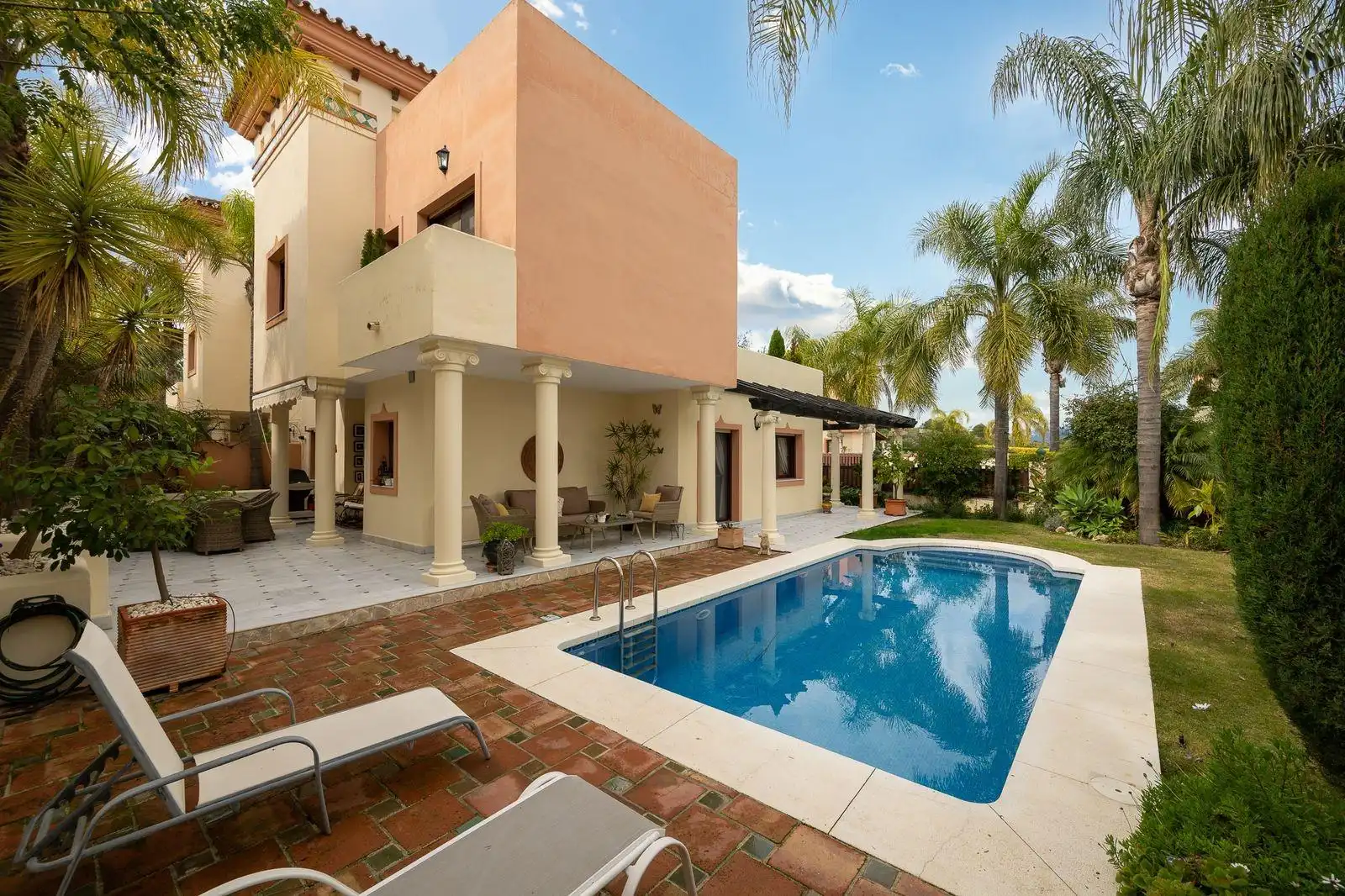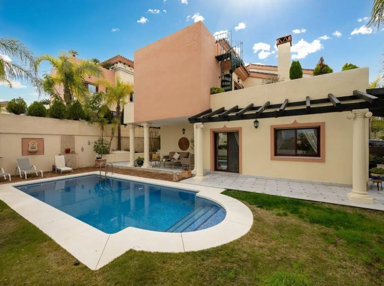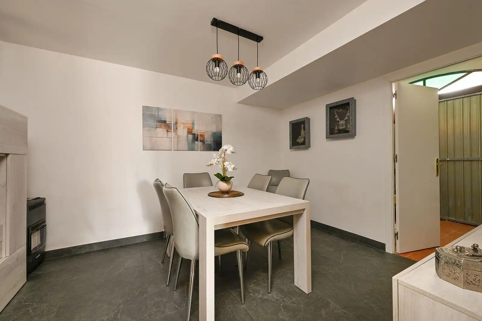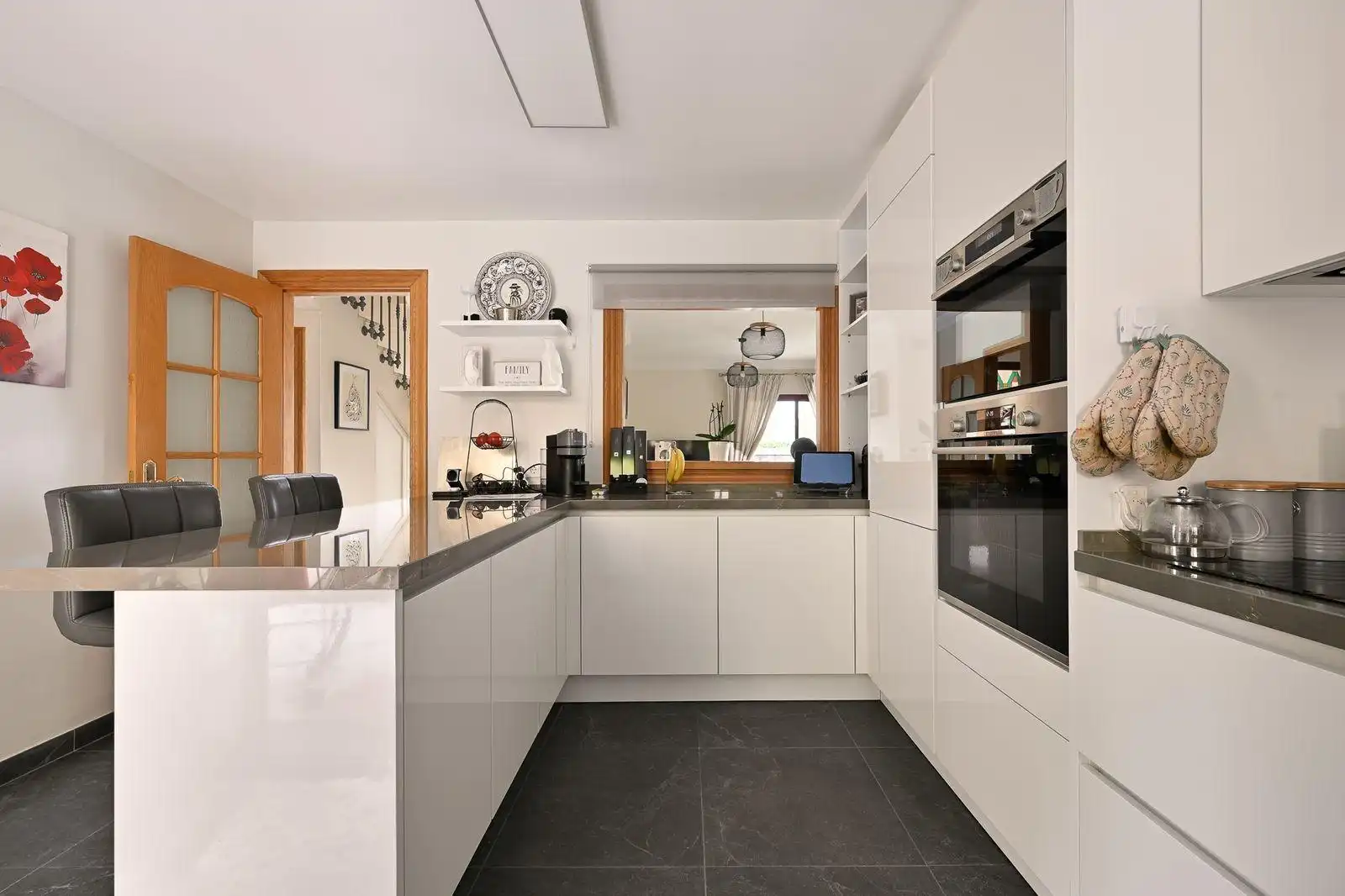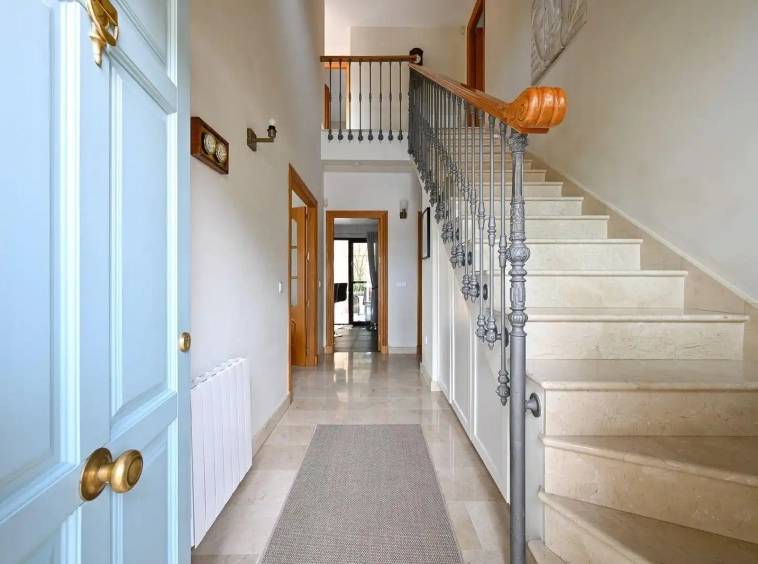 Desde el jardín delantero accedemos a esta estupenda propiedad que inmediatamente nos da la bienvenida en un amplio y luminoso recibidor con techos altos. En la planta baja nos encontramos con un espacioso y cómodo salón con puertas correderas que dan directamente al jardín y a la piscina privada . Cocina recientemente reformada , moderna y totalmente equipada y con salida directa a una preciosa terraza en la parte trasera del jardin. Junto a la cocina tenemos un baño de invitados. El garaje original se ha convertido en zona de comedor y un pequeño trastero, con un amplio lavadero contiguo, lo que proporciona un excelente espacio adicional. Una sólida escalera conduce a la primera planta. A mano derecha se encuentra el espacioso dormitorio principal con acceso a una terraza privada, armarios empotrados y un amplio baño en suite. A la izquierda se encuentran dos amplios dormitorios adicionales, ambos con acceso a una terraza, y un baño familiar.